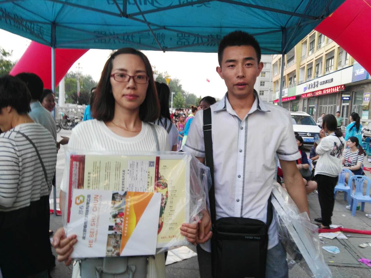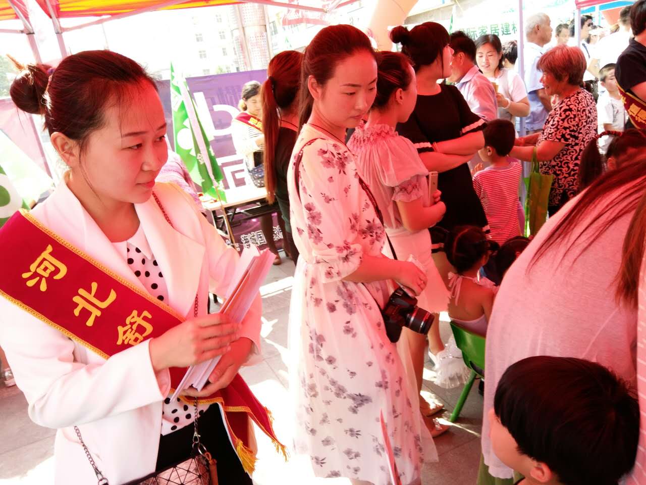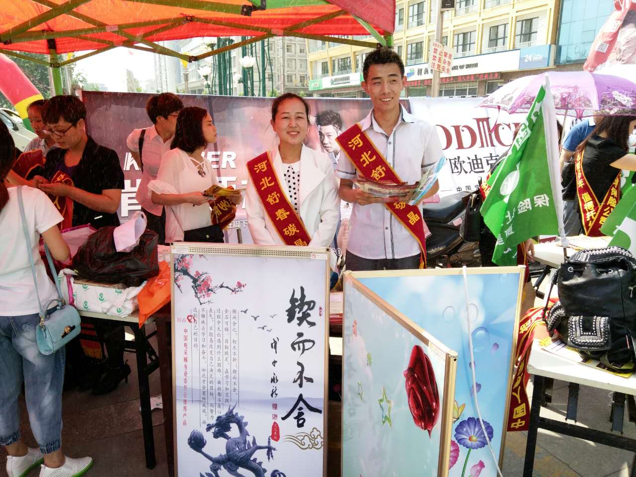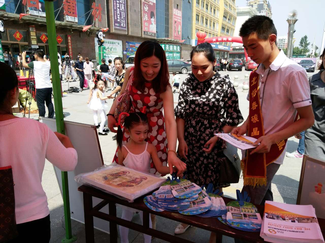 我公司工作人員向大家發(fā)放宣傳單冊(cè)和消暑工具。